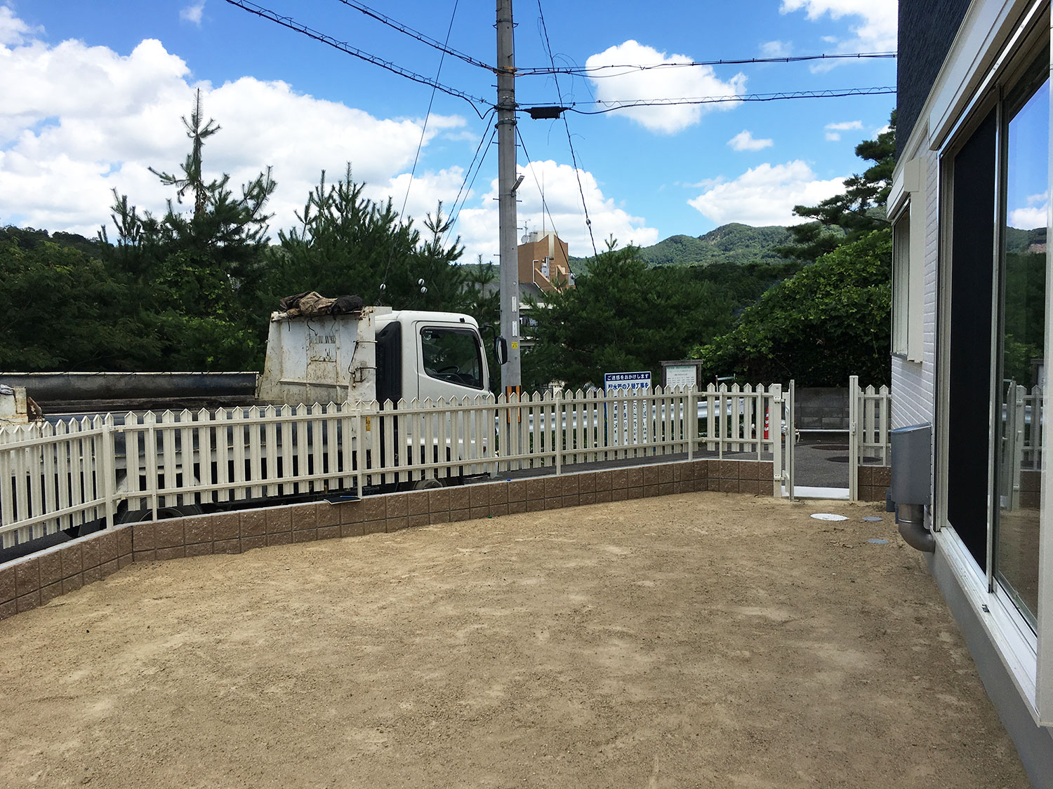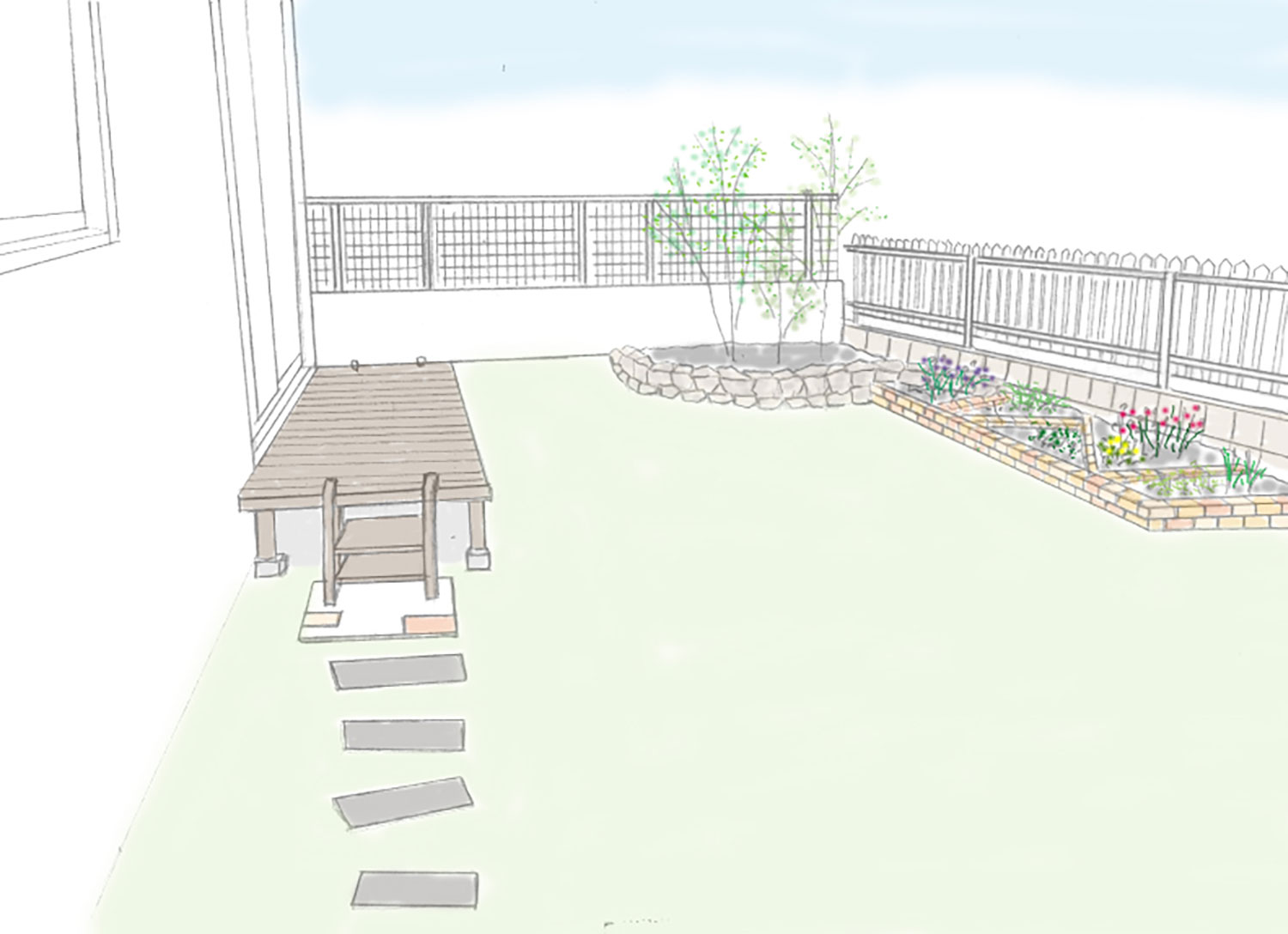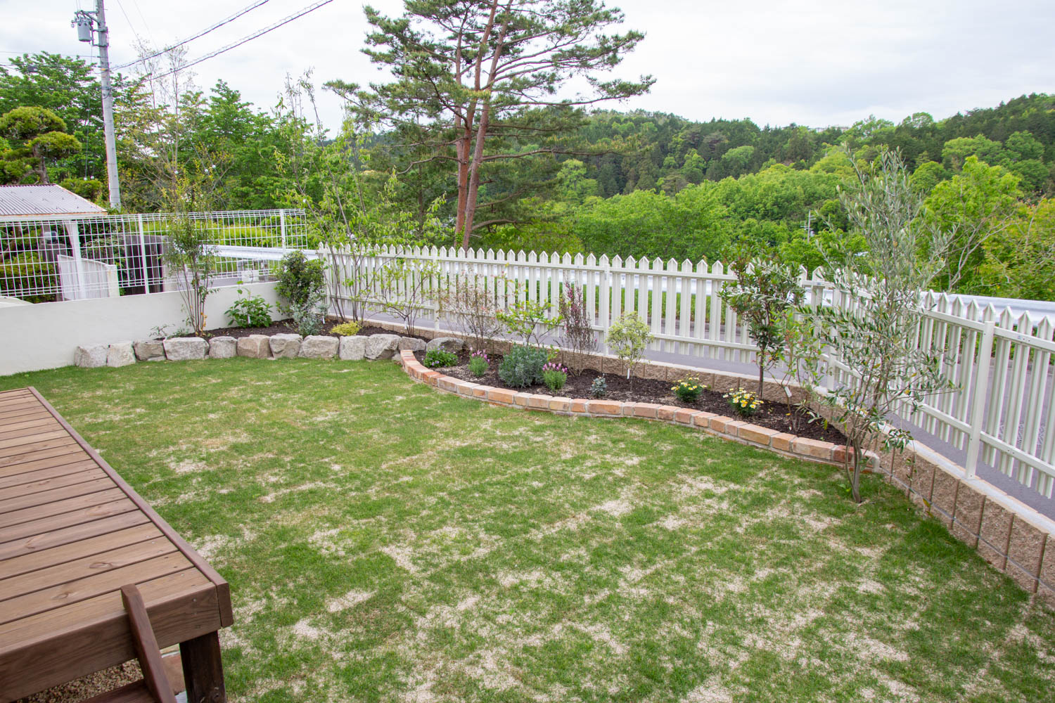 家を新築され、手付かずだった主庭の施工を依頼頂きました。菜園、小さなデッキ、樹木を植える場所など、お客様のご要望に応じてシンプルに提案させて頂きました。