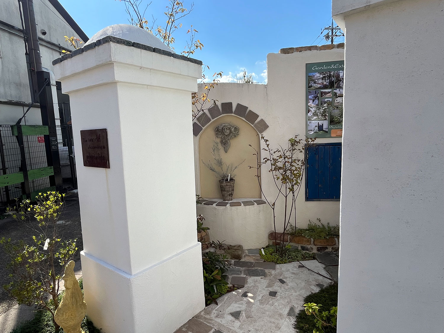 門柱。イタリア漆喰をこて目を抑えて上品に仕上げています。