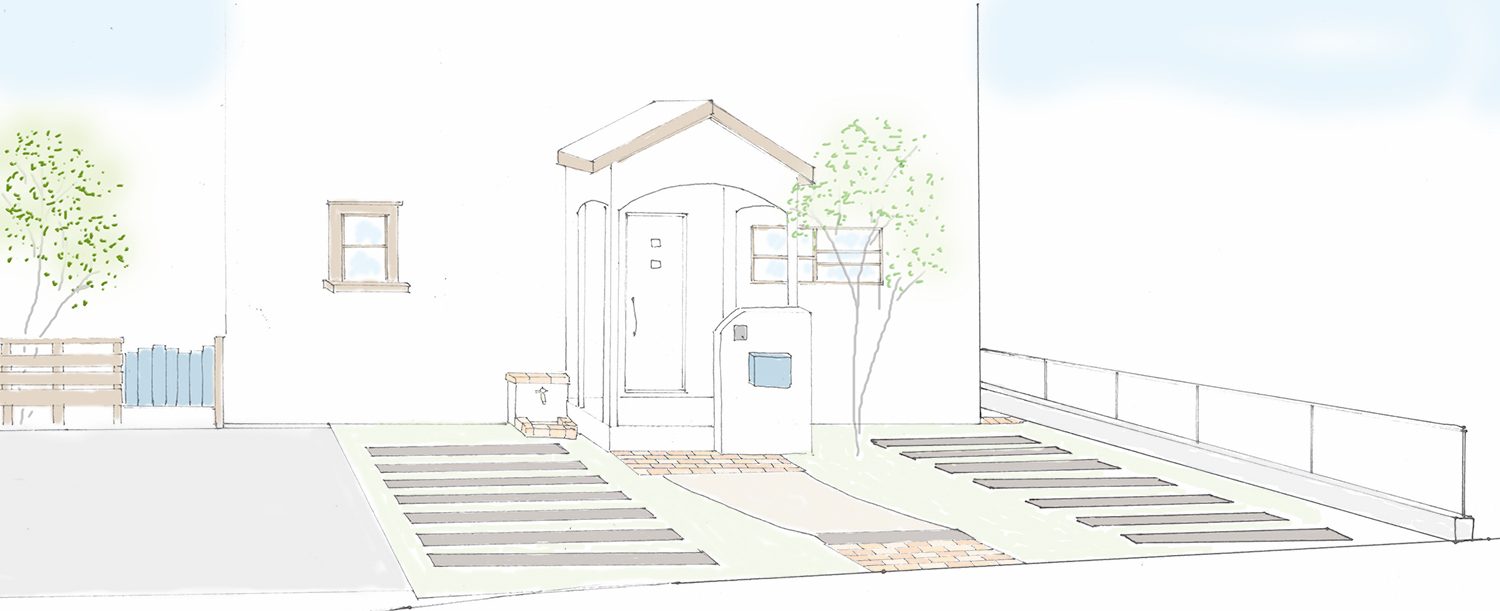 今回の事例のように、常時駐車をすることのない来客用の駐車場であれば、シンプルに芝生で作ることがコスト面でもビジュアル面でもお得かもしれません。ただし、芝生などが生育するには最低でも一日6時間程度の直射日光が必要です。