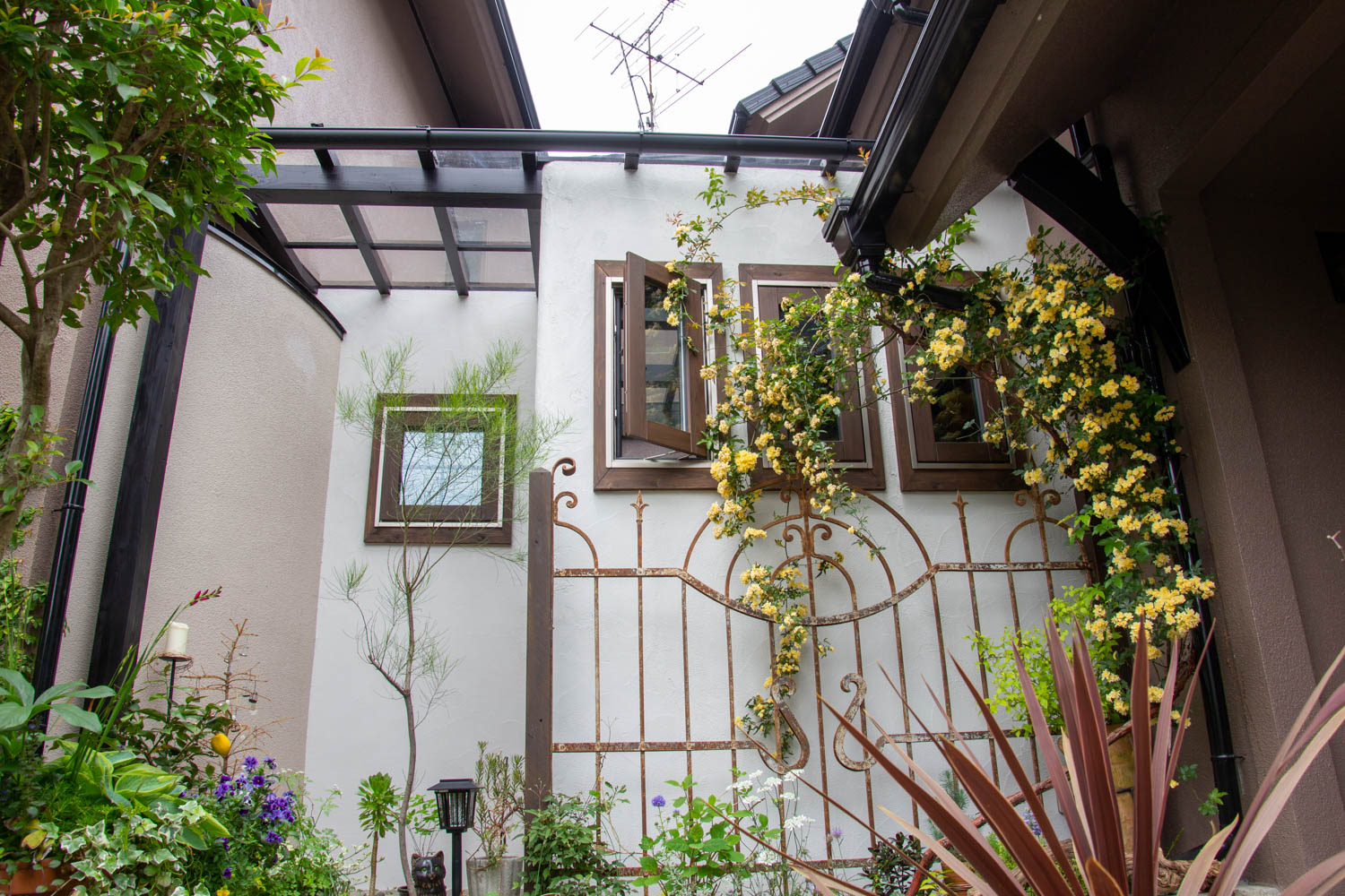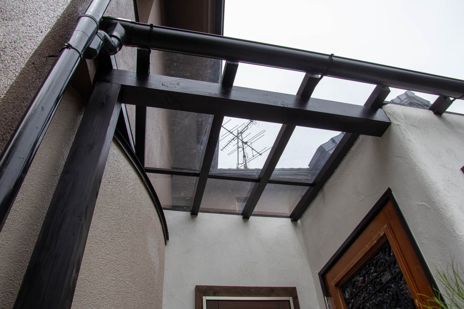 コの字型に建てられたご自宅。その中庭に当たるテラスをより有効に使いたい、ということで木製サンルームをご希望頂きました。
